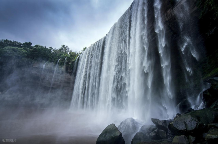 大瀑布群要看水量,丰水来得猛,枯水显得清。